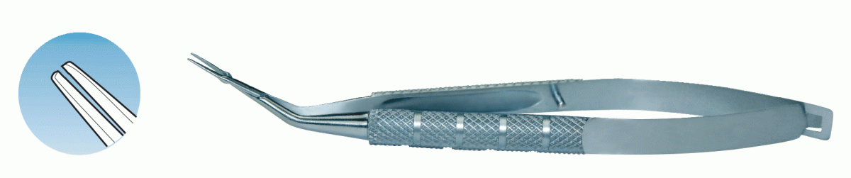 Nichamin IOL Folding Forceps II. 8mm thin jaws, 0.08 dia grooves for grasping haptics. Round 8mm dia handle. Overall length 110mm, 4.3"