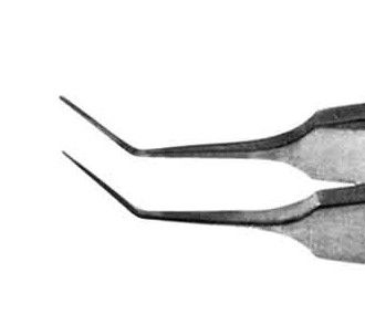 Sheets-McPherson Angled Tying Forceps angled 45 degree, 10.5mm tying platform, 1mm crisscross serrated tip. Overall lenght 82-85mm