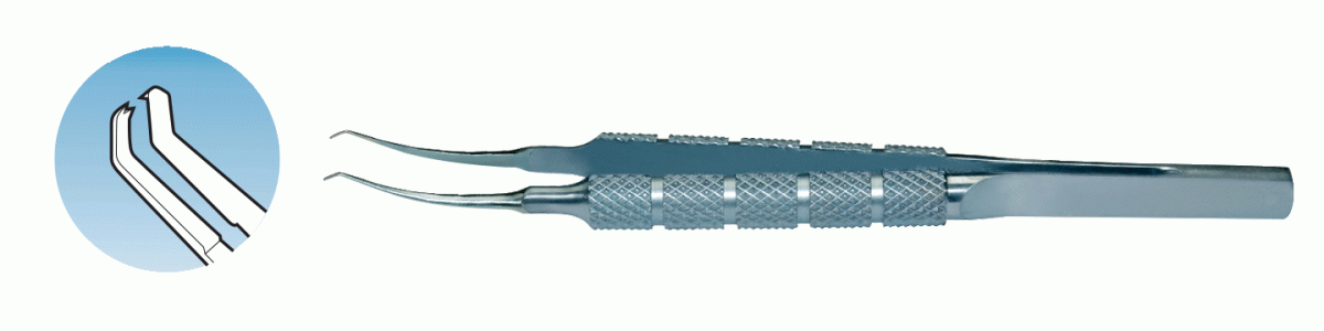 Girard Cornea Scleral Forceps Colibri 0.12 mm, 1x2 teeth 6.0 mm tying platforms Round 6 mm dia handle Overall length 100 mm, 3.8 inches TC teeth and platforms