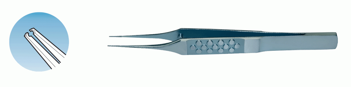 Pierce Type Microforceps Straight with fine tips, Flat 9 mm wide handle, Overall length 80 mm, 3.1 inches TC tips