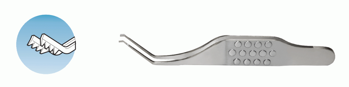 Microserration jaws to spread wound for examination   Soft spring action   Flat 6 mm wide handle   Overall length 75 mm, 2.9 inches