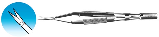 Impex Vannas Type Scissors Curved. Sharp 6 mm Curved blades. Round 2 hinge handle. Overall lenght 106 mm, 4.2 "